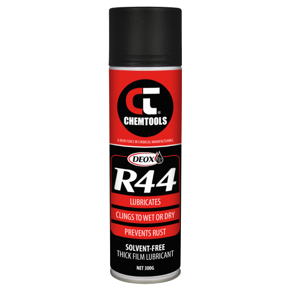 DEOX R44 Thick Film Lubricant cleans, protects, and lubricates all metal surfaces, providing superior corrosion protection for machinery, tools, and equipment. It is guaranteed to cling to most surfaces in wet or dry conditions, sealing and protecting against moisture intrusion.