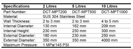 - High pressure design up to 1 Mpa