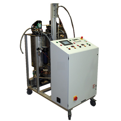 The DCT-2000 Multi Component Dispensing System is a flexible, digitally controlled, cart-mounted meter mix system featuring proprietary positive displacement pump technology ideal for medium to high volume dispensing requirements. It also includes proprietary microprocessor controls with a touch pad user interface, capable of up to 40 stored dispense programs coupled with the lowest industry maintenance requirements make this meter mix system the most reliable cost-effective machine available.